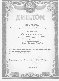 Кульгавый Илья, ученик 1 класса.Победитель районного конкурса рисунков "Дороги Великой Победы". Номинация "Героические сражения Великой Отечественной войны".
