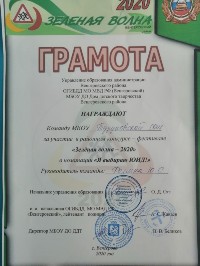 Александр Кишун, ученик 1 класса. Диплом 3 степени в VII Всероссийских предметных олимпиадах "SAPIENTI SAT" по окружающему миру.